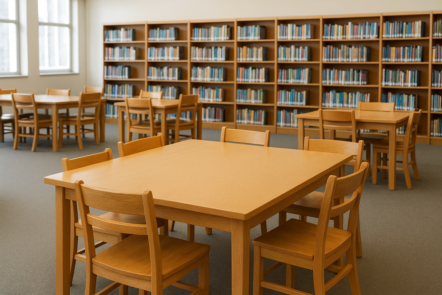 - Bàn ghế học sinh: Bàn ghế rời hoặc liền ghế, chất liệu gỗ công nghiệp hoặc khung thép, kiểu dáng đơn giản nhưng bền đẹp, kích thước chuẩn.