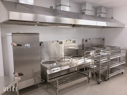- Hệ thống hút khói công nghiệp: Đảm bảo không khí trong bếp luôn sạch sẽ, thoáng đãng, loại bỏ mùi thức ăn & hơi nóng.